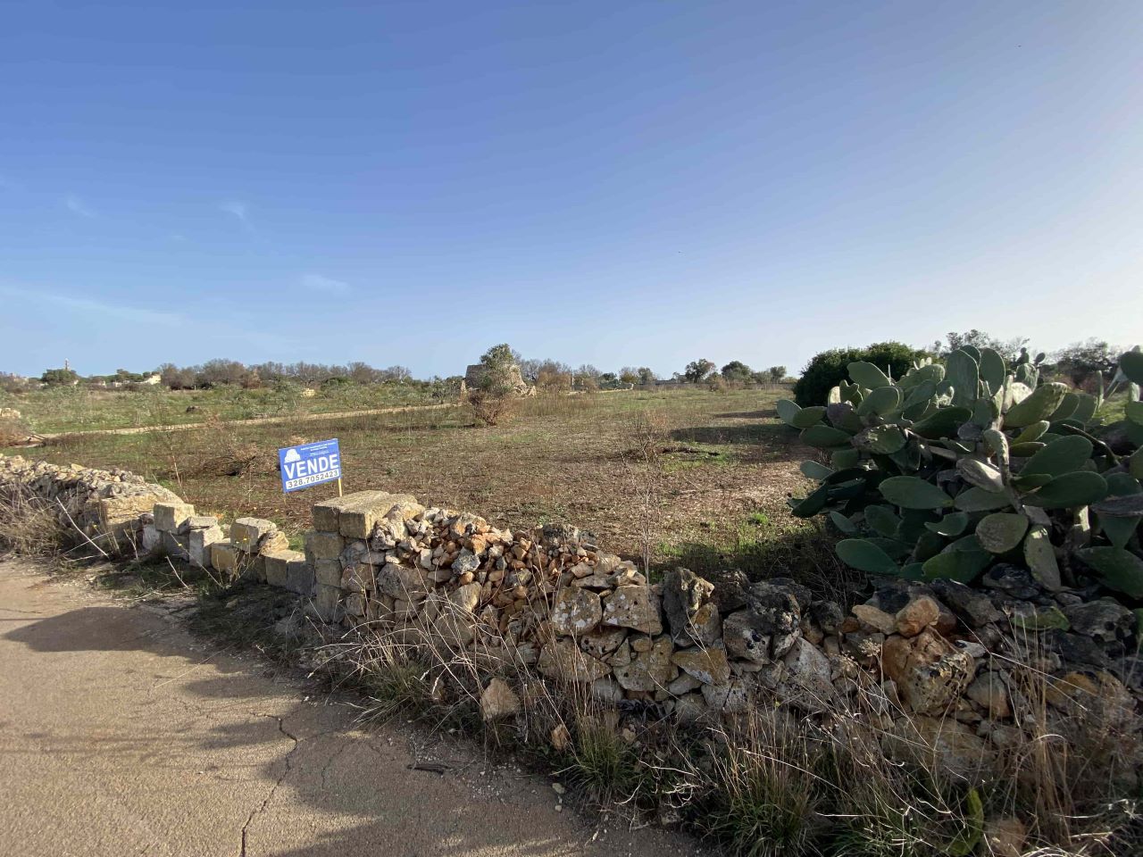 A Torre Suda frazione di Racale a soli 3 km dal mare, proponiamo in vendita fondo rustico adiacente la Provinciale 222 che collega la città con la marina con una superficie di circa 1 ettaro completamente recintato.