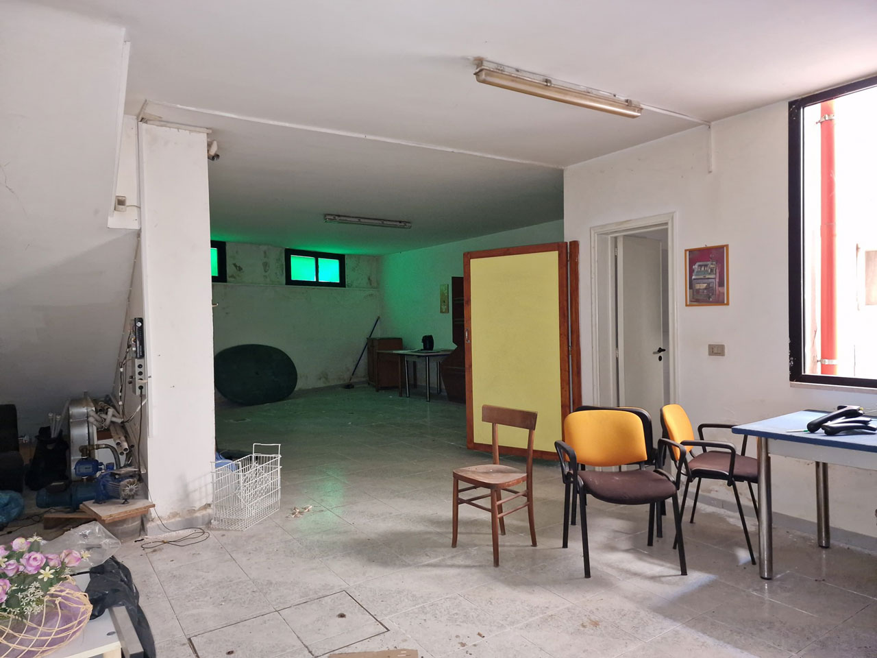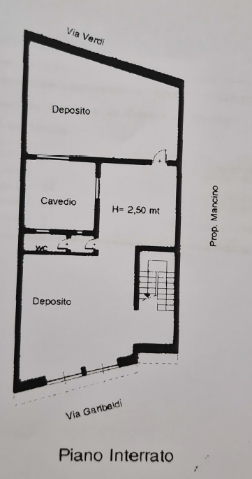 PIANO SEMINTERRATO adibito a uso deposito tavernetta, di circa 130 mq, con bagno e due ampi vani separati e con pozzo luce;