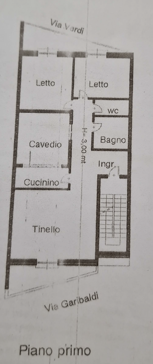PIANO PRIMO costituito da un’alloggio in fase di costruzione; composto da 4,5 vani di cui un futuro salone molto luminoso con balcone spazioso, 2 camere da letto, un bagno e tinello. Le camere hanno l’affaccio sulla strada sul retro con piccolo balcone. L’edificio è sito fra Corso Garibaldi e via Giuseppe Verdi, zona centralissima.
