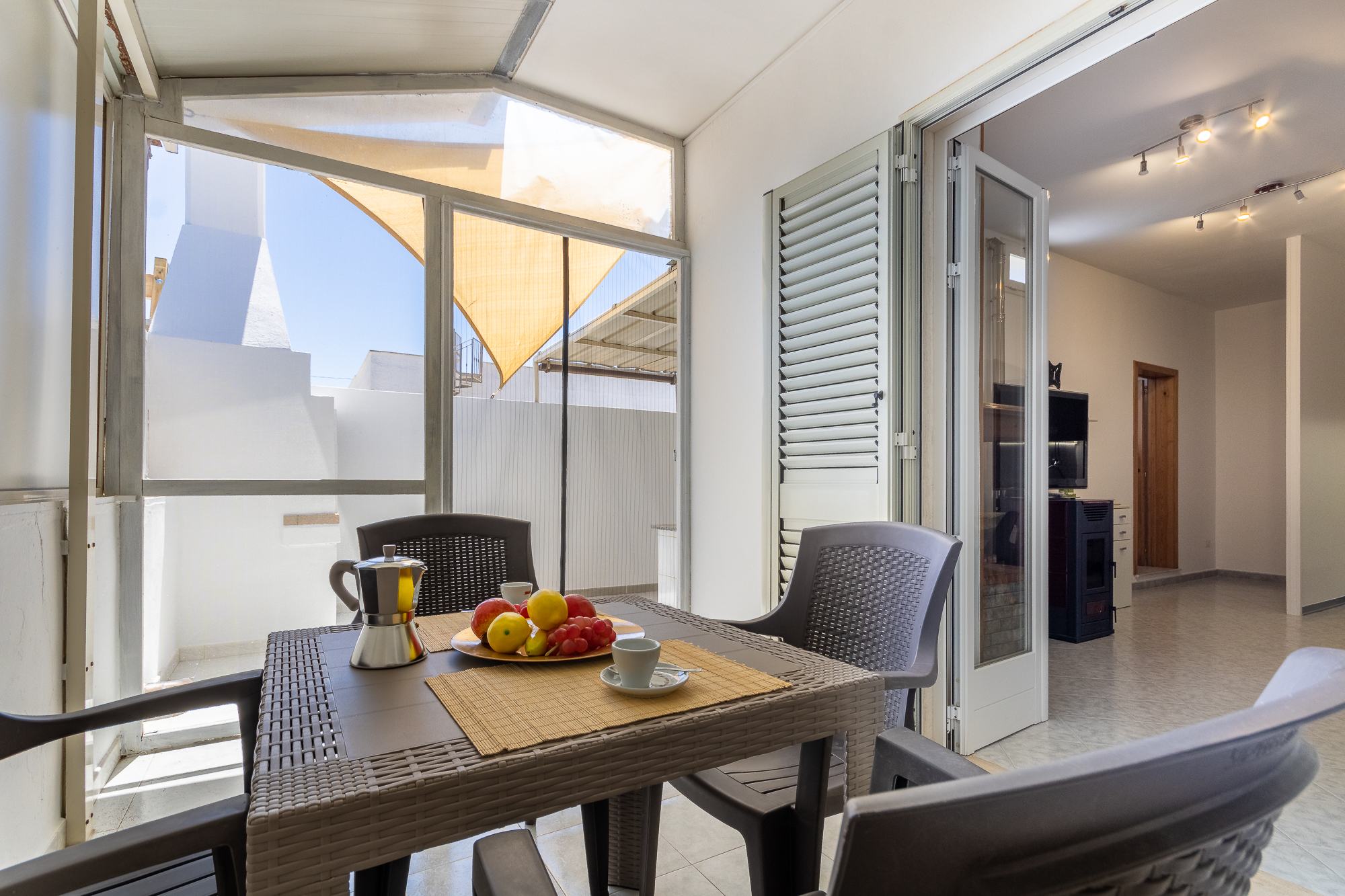 L’abitazione é provvista di acquedotto, pannello solare, climatizzatori per il raffrescamento degli spazi interni.
